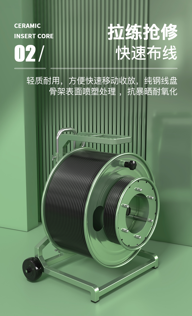 中科光電 單模雙芯車壁式TPU室外野戰(zhàn)光纜鎧裝防水通信野外拉練搶修1000/2000米+放纜車+航空頭-FC頭