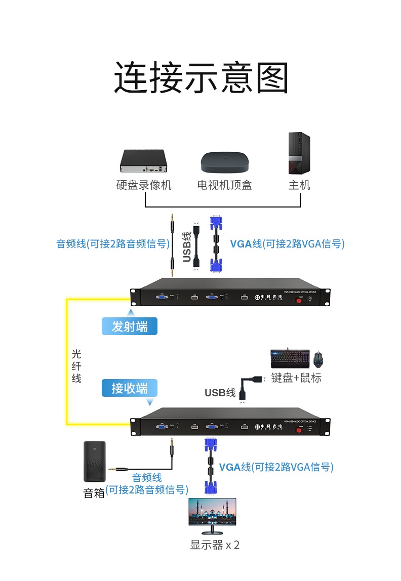 中科光電 2路VGA高清光端機 2路VGA視頻+獨立音頻+USB鍵鼠控制VGA轉(zhuǎn)光纖延長器轉(zhuǎn)換器收發(fā)器FC接口ZK-VGA/2LU